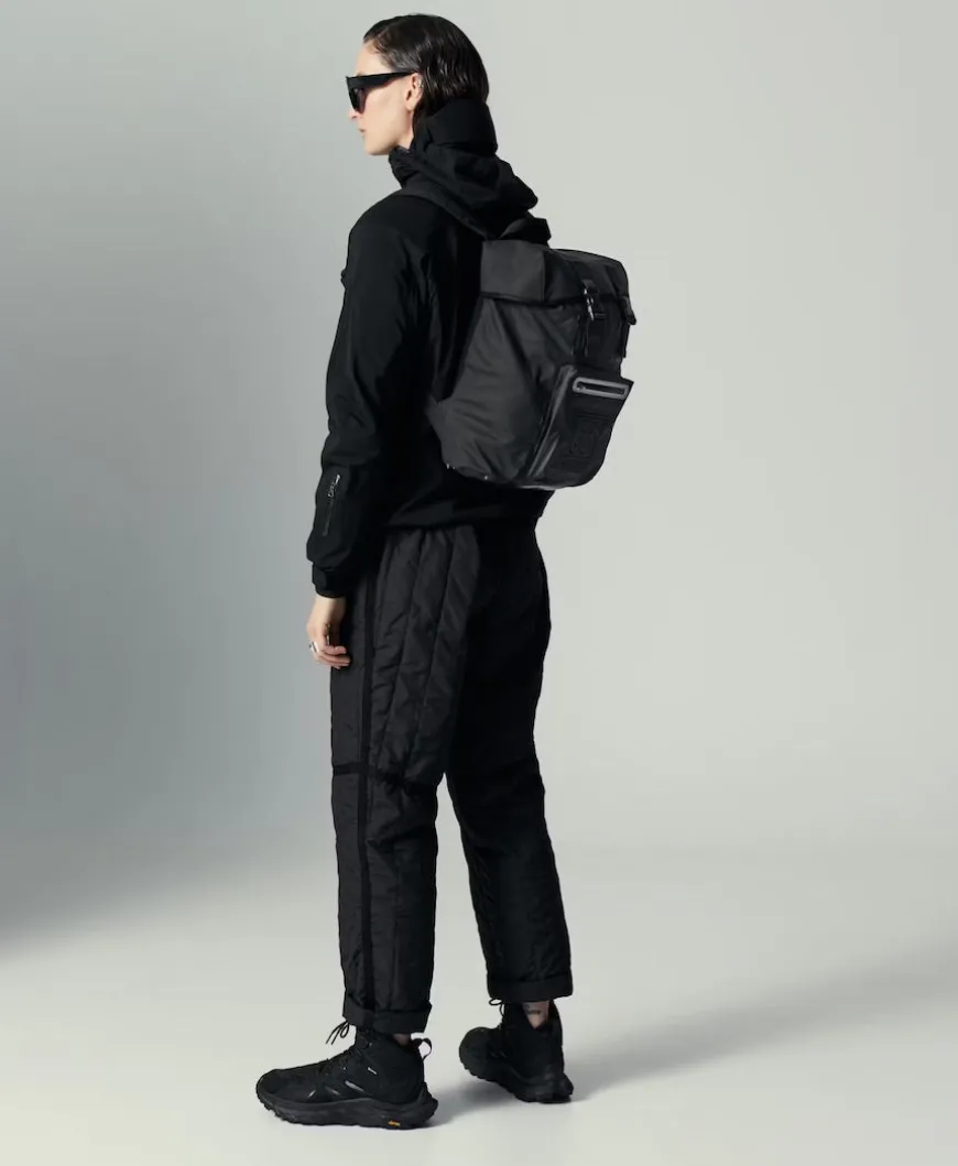 The 15L Backpack is a day bag for whatever the day brings. A durable coated waterproof fabric covers the sides, top, and bottom. Neoprene on the back lends comfort and breathability. On the bottom, a reinforced panel keeps belongings protected from scratches. A quilted interior lining make the 15L an ideal companion for cameras, computers, and whatever must arrive safely. A dual-buckle closure, internal drawstring, and front pocket with water-resistant reflective zipper provide additional utility.