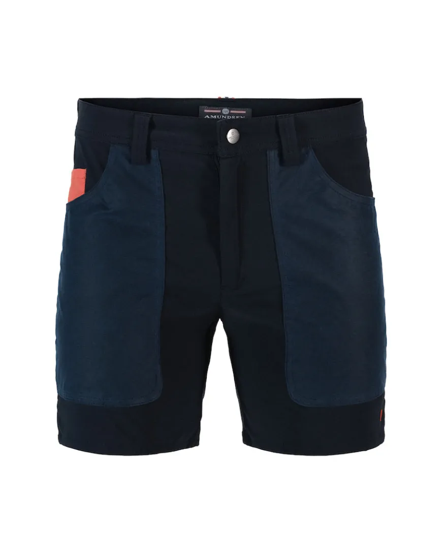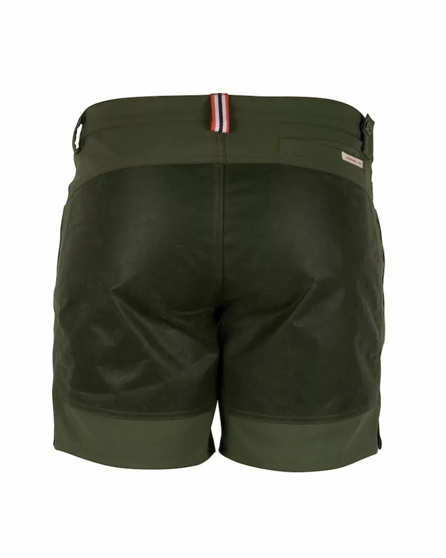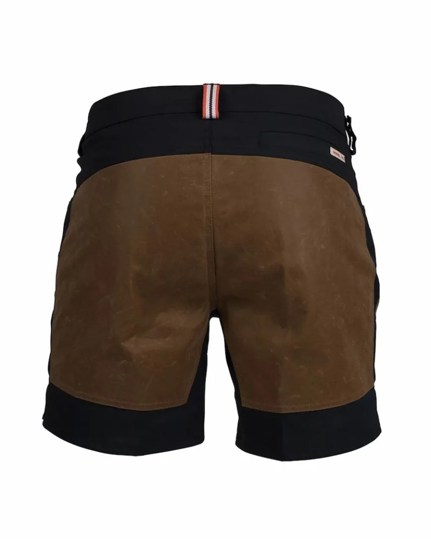 Our 7 Incher Field Shorts by Amundsen Sports are made with extra strong stretch Cordura from FOV Sweden. These lightweight shorts are designed for rugged use, bolstered with waxed cotton canvas reinforcements from Halley Stevenson, Scotland. Above the right-hand pocket, you’ll find our signature weathered red color watch pocket.