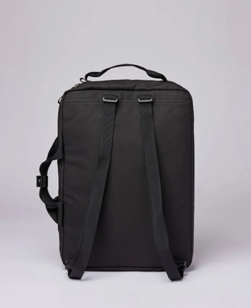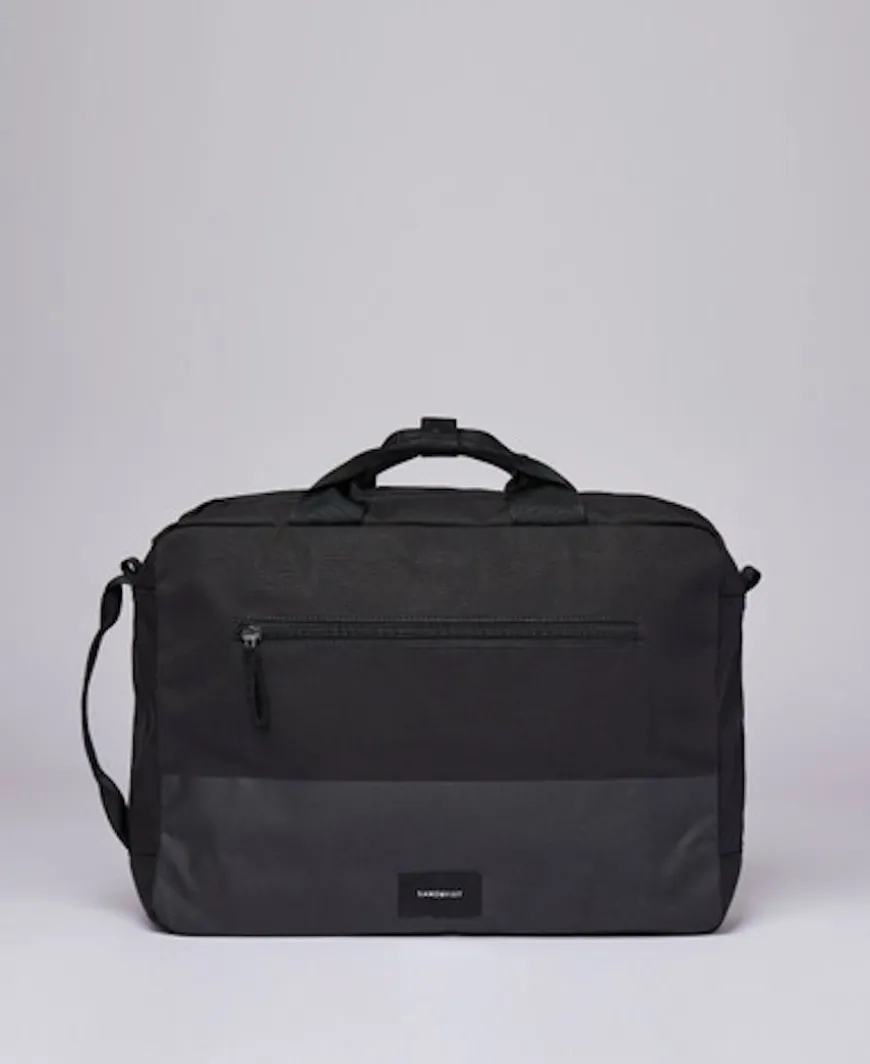 Work bag that doubles as a backpack. Treated with a silk print coating at the bottom and front for extra water resistance. Functional yet stylish, the perfect companion for work and school.