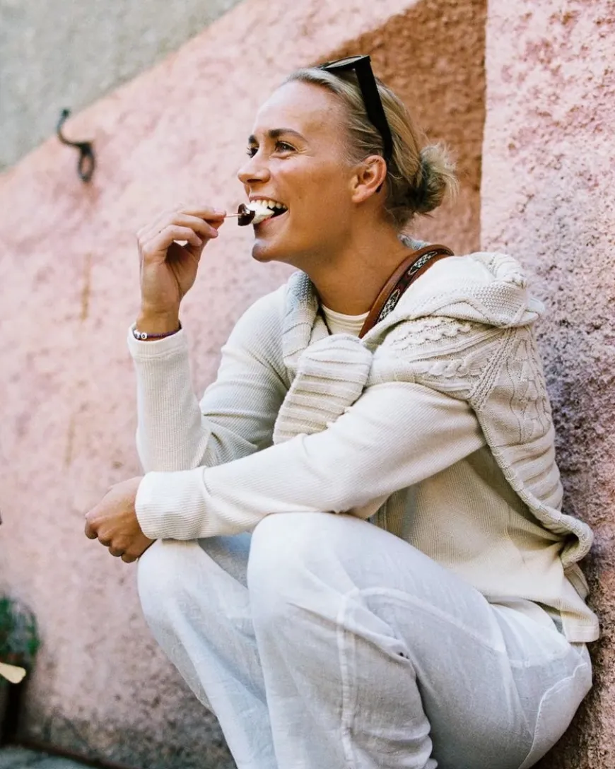 “Milk casein” fiber was used in many garments and household items in America and Europe during the 1930s and ’40s. It’s made using a process that is similar to rayon/viscose (derived from wood pulp), but because it’s a regenerated protein fiber, it reacts like wool. Historically, it was used as a wool-alternative, advantaging soldiers on the front lines in times of wool scarcity. However, it fell out of use after WWII ended and newer, cheaper synthetics such as nylon grew in popularity. The cotton/milky fabric improves skin comfort, moisture absorption and is naturally antibacterial.