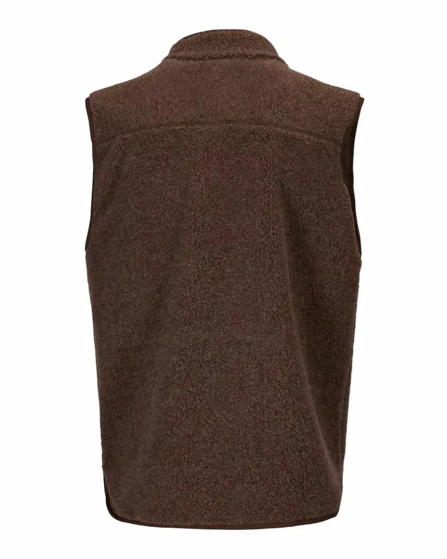 The Heroes Fleece Vest is a comforter in a soft yet rugged sherpa wool fleece. It’s a natural undyed piece – meaning that the color comes from a mix of sheep wool. We have applied a chest pocket in waxed linen/cotton – the kind of convenient feature the old explorers would sew themselves while in camp.