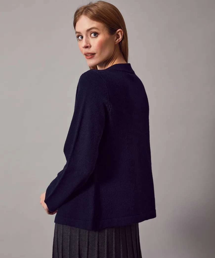 Marlis is a soft knitted cardigan made of 100% lambswool. The cardigan has a wrap design and closes with buttons at the front. It is form-fitting and ends at the hip. A comfortable and stylish cardigan that is easy to match.