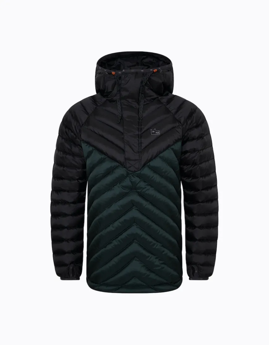 The Övik Down Anorak by Varg is a modernized version of the classic Älgön downhood. Constructed from 100% lightweight recycled fabrics, it has a half zipper at collar for enhanced ventilation, a two-way side zip for closure and opening. The high quality down insulation offers warmth to a low weight. This unique garment clearly combines functionality and sustainability.
