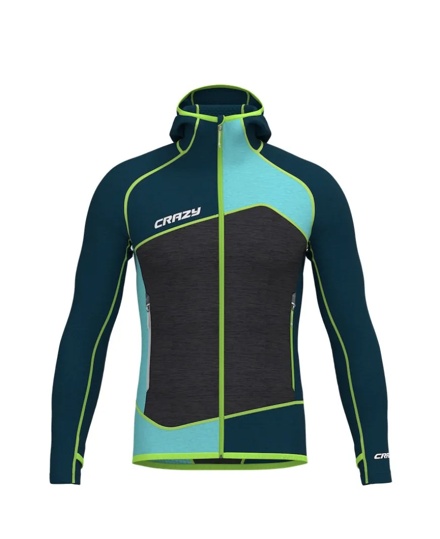 The Resolution hoody is the centerpiece and the most popular garment in the Crazy collection – a distinctive style and one of the most emulated. It is an extremely versatile model, intended for ski touring, that can be worn as a mid-layer when the weather turns very cold or as a mid-season outer layer. The fresh, youthful and eye-catching look is definitely a factor contributing to its great success. It is made with High Performance 3D, the tried-and-tested fleece that, thanks to the honeycomb weave, promotes breathability, and it is combined in some parts with the warmer HP. In addition, the inside is finished with a Graphene treatment that helps regulate warmth, improves abrasion-resistance and antistatic properties and prevents bacteria build-up. Regular fit, elasticated binding on hood and bottom hem, centre zip opening, zip-secure pockets and ARTVA-dedicated pocket on the inside: all details that underline the dynamic nature of this garment.