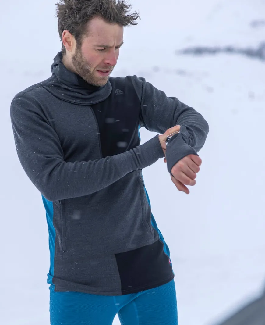 The WarmWool Hoodsweater with a zippered neck is one of Aclima’s most popular garments. With the functional tree-stage function, you can choose between a round neck, high collar or balaclava – all in one and the same garment. The balaclava has WoolNet over the nose and mouth to minimize the risk for ice on really cold days. The fit is snug and is thus perfect closest to the body on cold days. Rib knitted sides for comfort and freedom of movement. Two-way zippered neck for best temperature regulation. Thumb holes for warm wrists. Hands can be warmed in zippered stomach pocket. The wrists have a practical opening for easy access to an altimeter/watch.