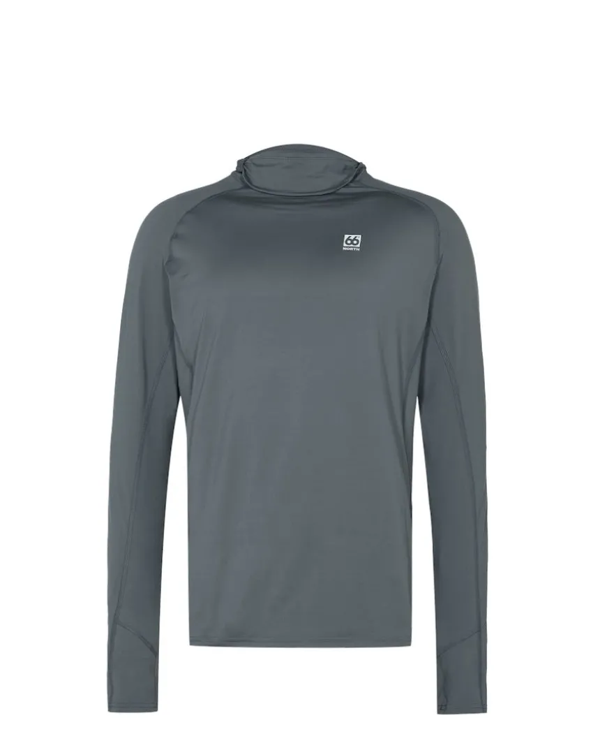 Adalvík Hooded by 66North is made of stretch fabric and makes this lightweight t-shirt comfortable to wear. In addition to its lightweight and breathable properties, the fabric wicks sweat away and therefore helps to keep you dry when you sweat. Features a fitted hood.A trim fit baselayer with a performance enhanced hood. Dries quickly and comfortable next to skin.