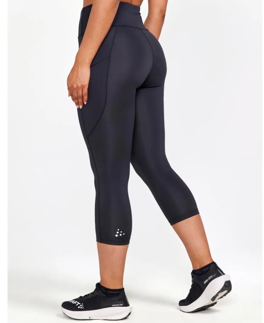 Advanced and smooth capri tights with wide waistband for optimal comfort during intense workouts. Made of soft, peached recycled polyester and elastane jersey with great pullback.