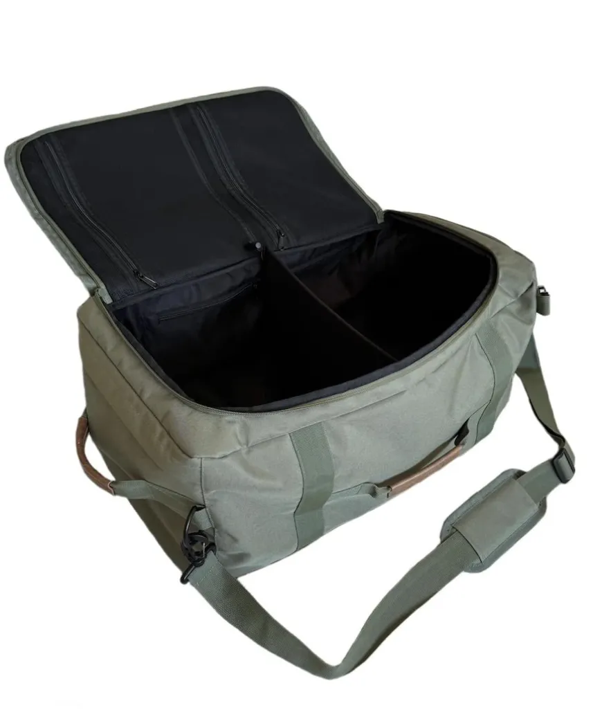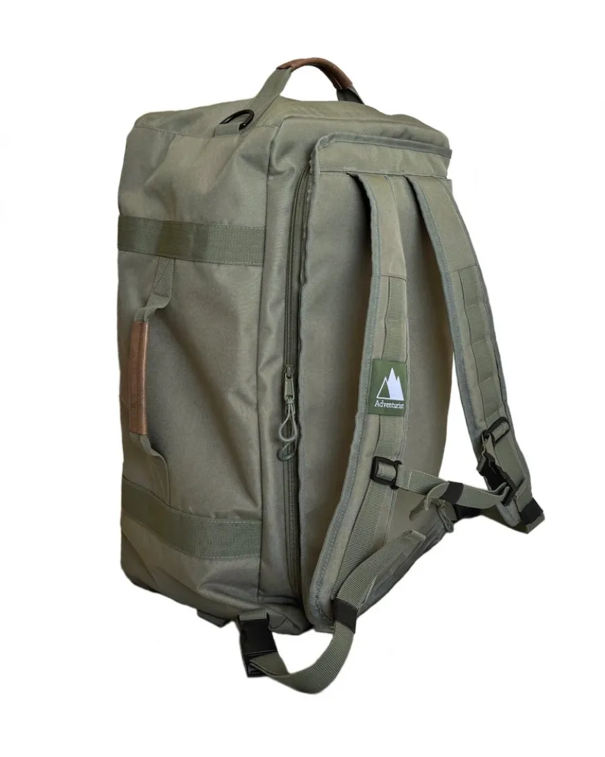 The Carry On Duffel Backpack by our friends at Adventurist is made with ultra-durable, water-resistant 1000D polyester and vegan leather straps. It is designed with dual front & back padding to ensure protection for all of your belongings.