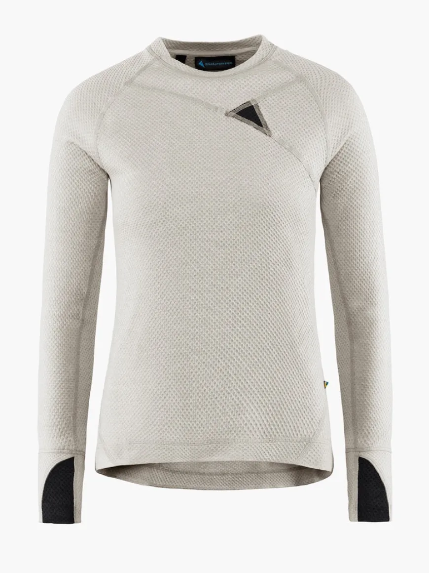 The women’s Huge Crew by Klattermusen is a fast and light mid layer for ski mountaineering and climbing. The Norna® material of the Huge crew is based on a simple but very effective technique which makes it extremely fast drying, while it still absorbs heat to keep you warm.