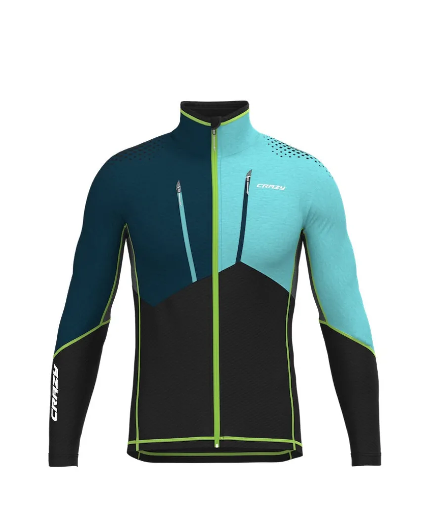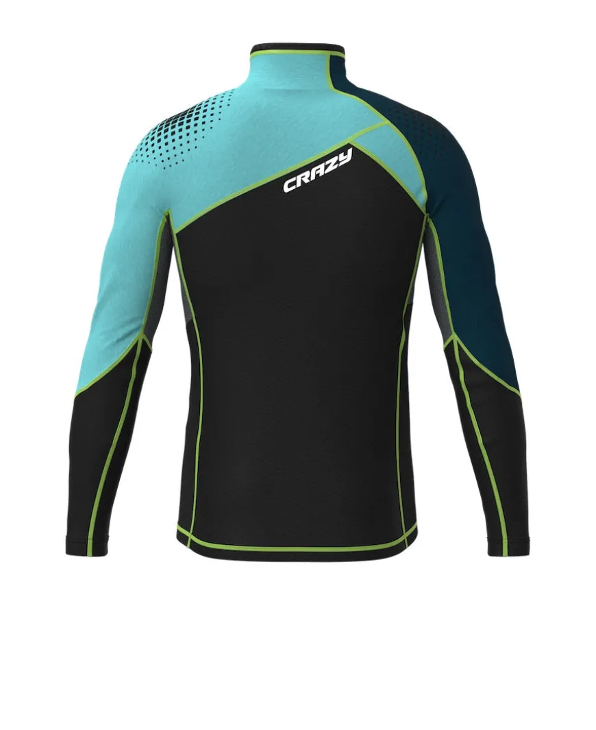 Technical hybrid second layer for your high-mountain challenges. This top with front full zip and ultimate breathability, lightweight, versatile and minimalist, has been created with modern mountaineering in mind as a garment to carry with you at all times. It is constructed with Crazy’s preferred fabric for the ‘Mid layer’ collection, our high-breathability HP 3D that, thanks to the honeycomb weave, promotes moisture wicking and helps regulate body temperature. Together with the athletic fit, two practical chest pockets make it ideal even with the harness on and, as a model with no hood, doesn’t restrict your movement while wearing a helmet or a more structured outer layer. It also features an internal mesh pocket and a small, ARTVA-dedicated pocket.