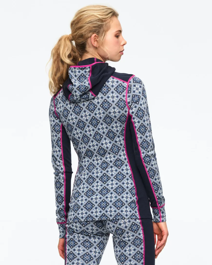 The Rose Hood has a classy, feminine design and is made from superfine, 100 percent Merino wool with 4-way stretch. It is wonderfully soft on the skin, breathable and naturally odor-resistant. Thinner side panels under the arms increase breathability and a slim fitting hood provides extra protection. A “must have” base layer.